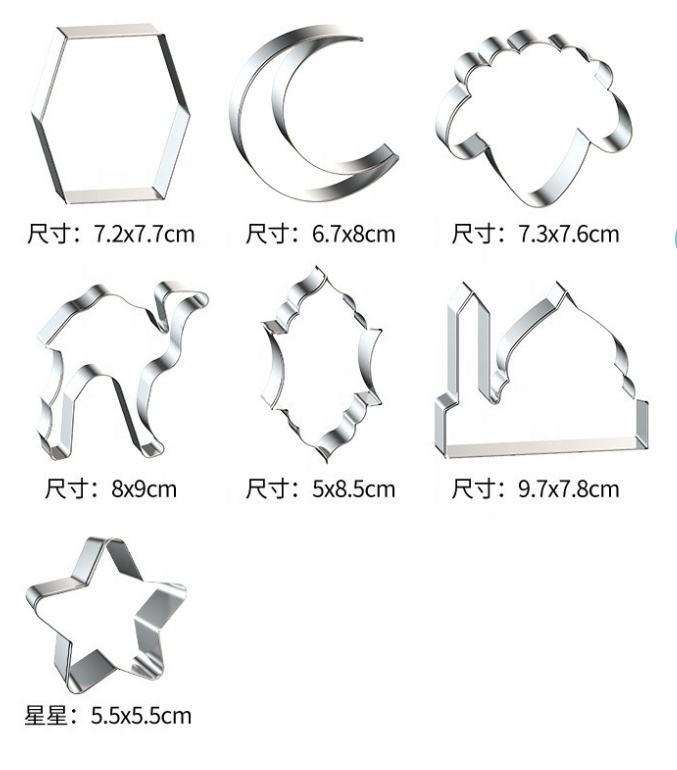 Mubarak Moon Star Church lanterna Set di stampini per biscotti in acciaio inossidabile testa di pecora e taglierine per cammello per la cottura per il Ramadan