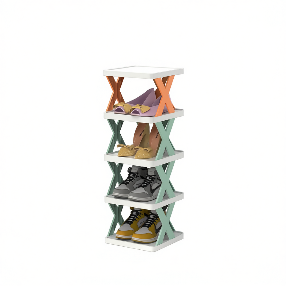 Mugg 6-Tier X-Shaped Shoe Rack Plastic Adjustable Foldable Modern Design For Home Apartment Living Room Furniture