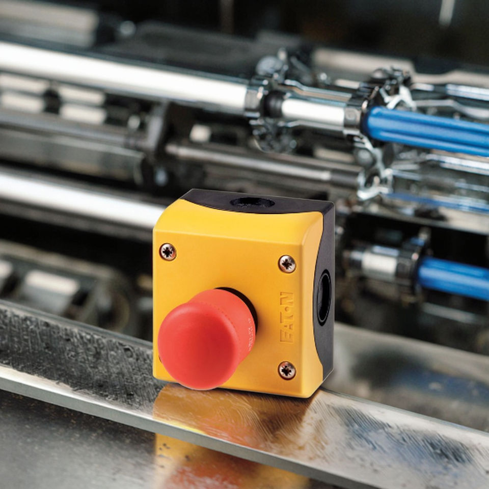 Pulsante di arresto di emergenza Muller Serie M22 con 1 contatto normalmente aperto e 1 contatto normalmente chiuso, con guscio