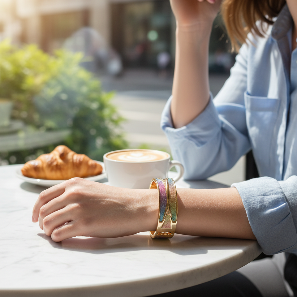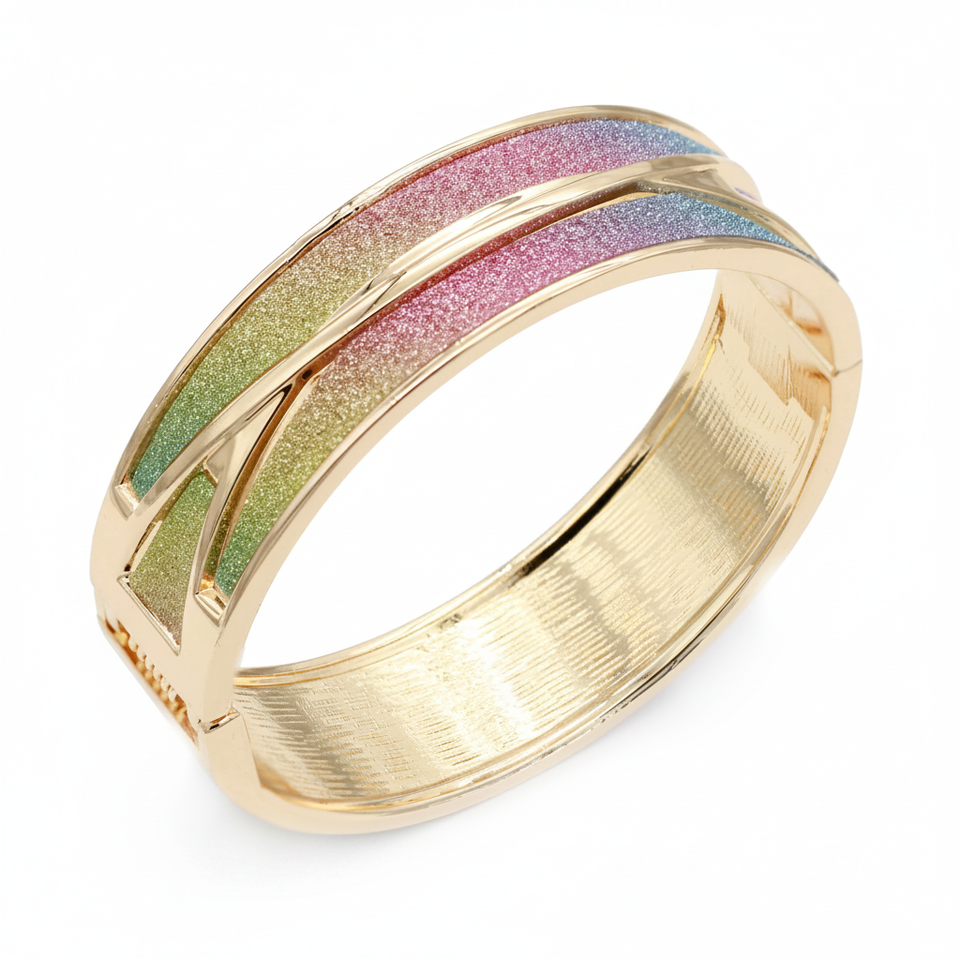 Multi-Color Glitter Hinged Bangles Gold-Plated Fashion Bracelet