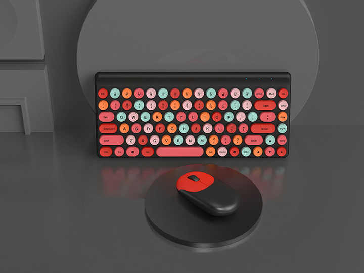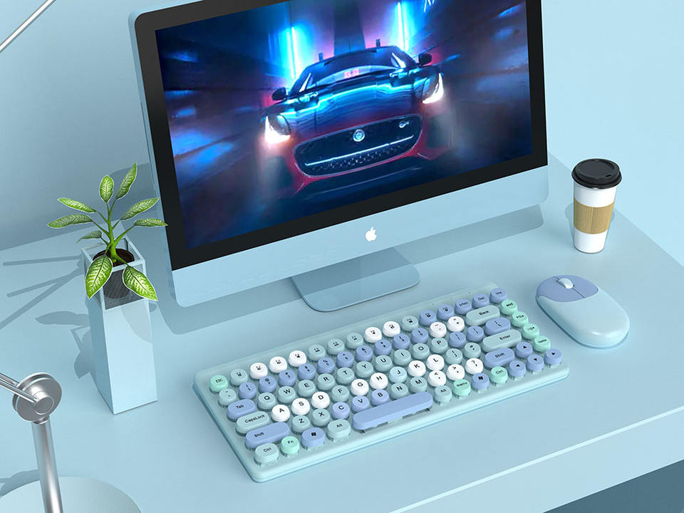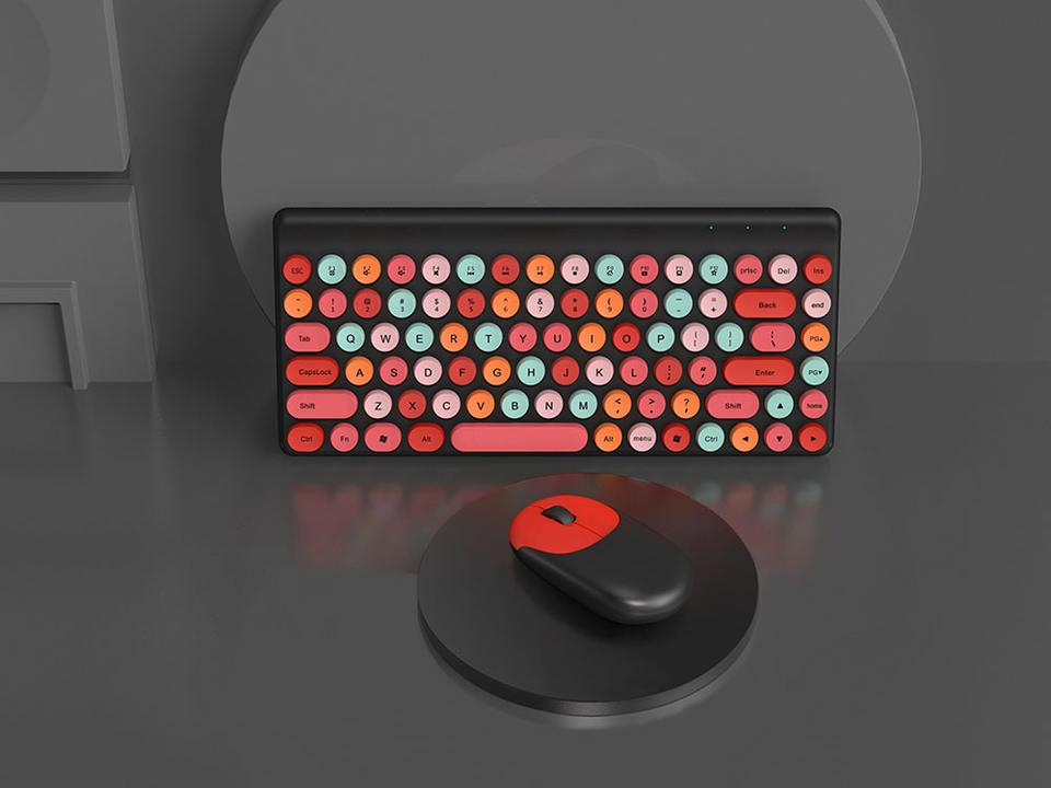 Combo Tastiera e Mouse Wireless Multicolore Ergonomico 2.4G per Ufficio con Tastiera a 87 Tasti e Mouse Ottico