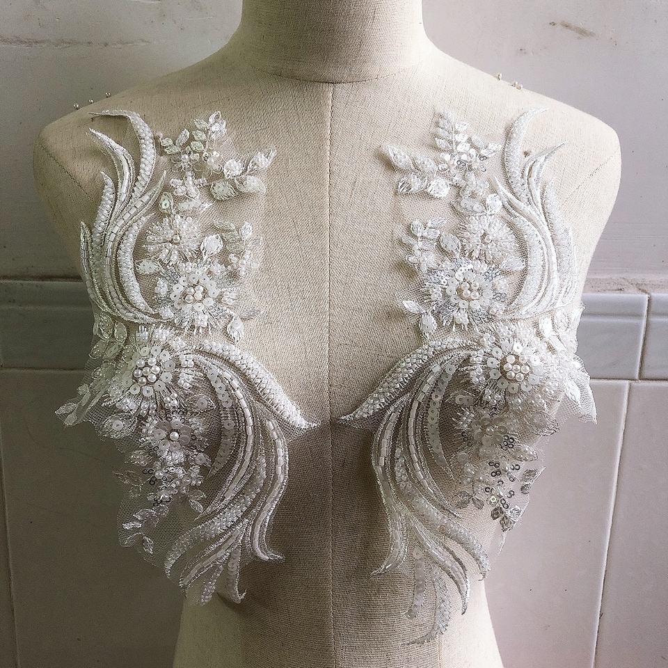 Applicazione in Pizzo di Lusso con Perline e Paillettes Ricamate Multicolore per Abiti da Sera LT2778A
