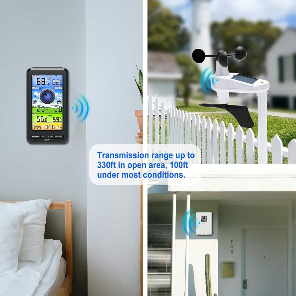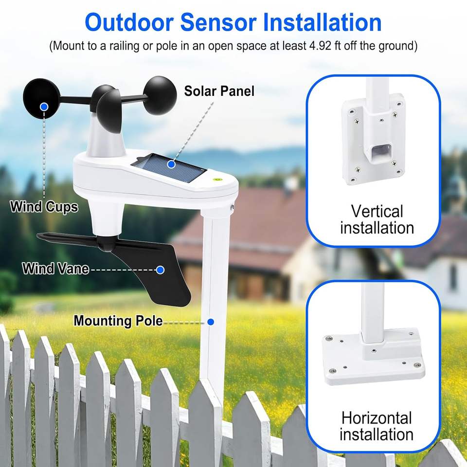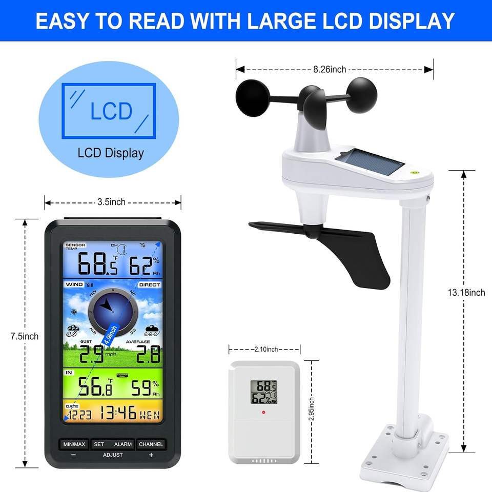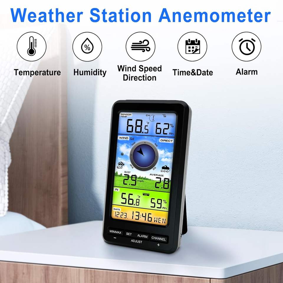 Stazione Meteo con Anemometro Marino Wireless Portatile Sensore Multifunzione 3-in-1 di Temperatura, Velocità e Direzione del Vento in Vendita
