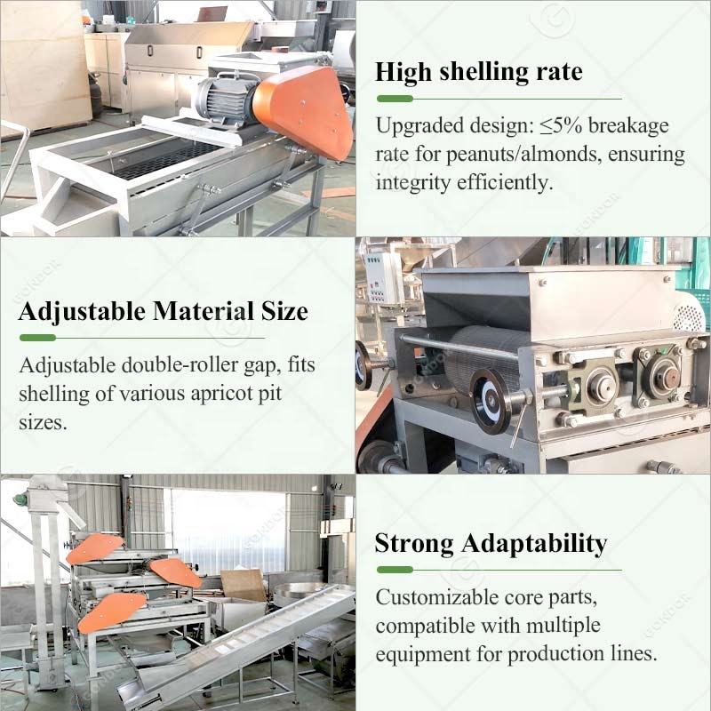 Spazio tra rulli regolabile: Permette una sgusciatura precisa di noci di diverse dimensioni, riducendo la rottura dei gherigli e migliorando l'accuratezza della sgusciatura.