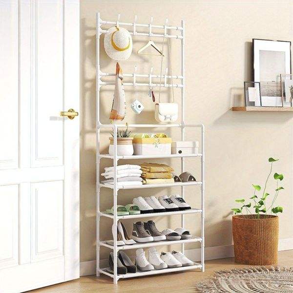 Multi-funzionale 5-Tier scarpiera appendiabiti Freestanding ingresso Organizer per 10-15 paia scarpe stivali cappelli cappotti camere da letto