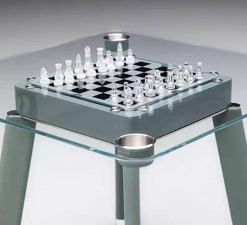 Tavolo da Gioco Multifunzionale con Piano in Vetro Temperato, Scacchiera Integrata e Portabicchieri per Bar Domestico Moderno