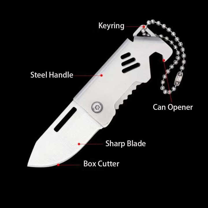 Coltellino Tascabile Multifunzione in Acciaio Inox, Lama Pieghevole, EDC per Campeggio, Frutta, Piccolo Coltello di Sopravvivenza con Portachiavi