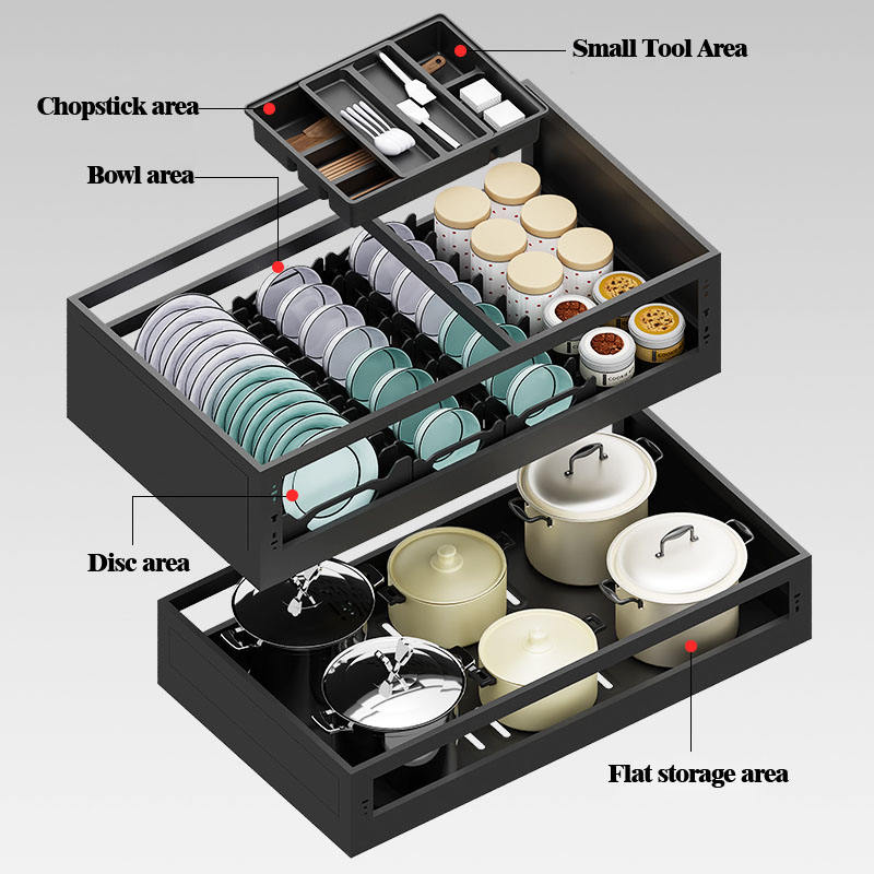 Cestelli Portaoggetti Multifunzionali dal Design Moderno, Organizer Scorrevole Elegante per Pentole e Padelle, Accessori da Cucina per Casa e Bar