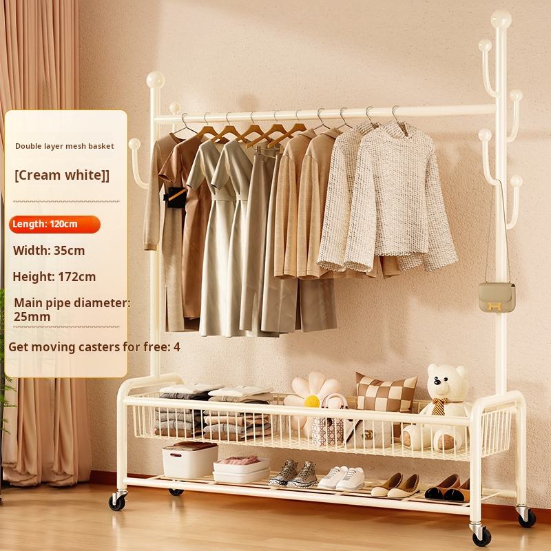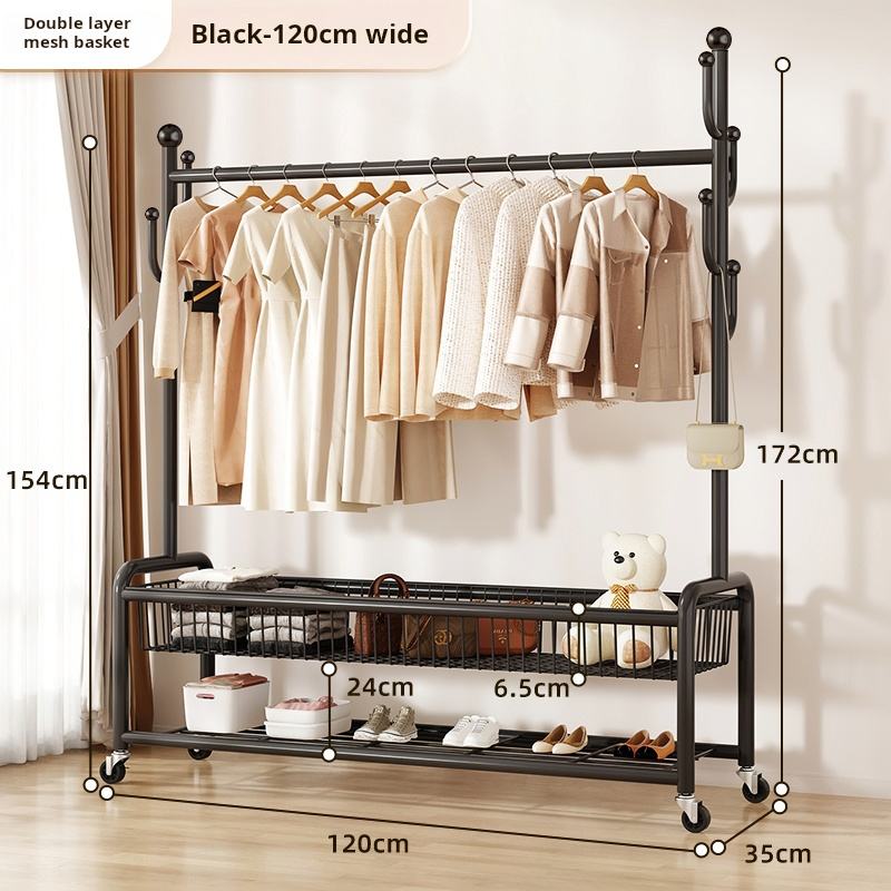 Appendiabiti Multifunzione Mobile da Terra per Camera da Letto Stand Appendiabiti Semplice in Metallo Doppio Singolo Espositore per Vestiti Scarpe e Bagno