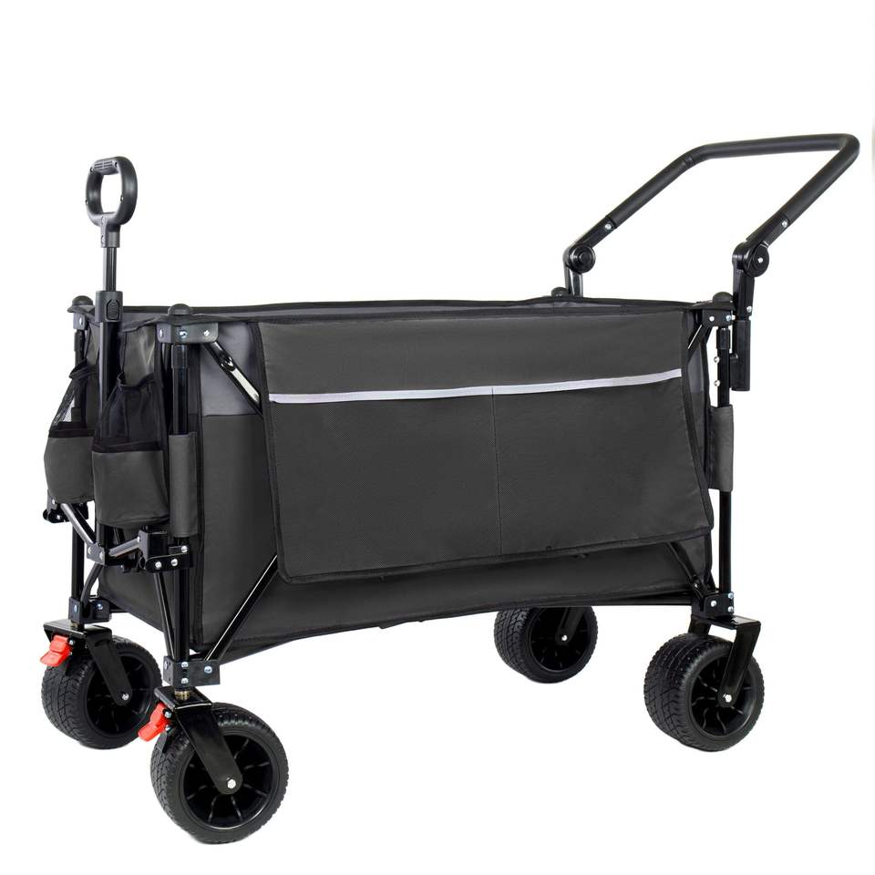 Carrello Pieghevole Multifunzione Push-Pull con Maniglia Girevole, Tettuccio, Ruote All-Terrain 7x4, Freni e Alta Capacità di Carico per Campeggio