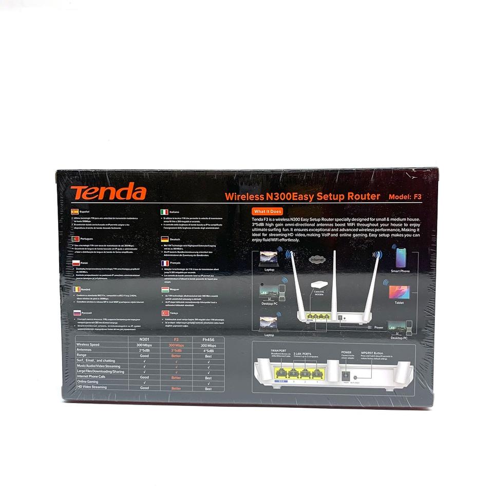 Tenda Router Wireless F3 300 Mbps 2,4 GHz b/g/n, 3 antenne esterne, 1 WAN e 3 LAN, per abitazioni piccole e medie, ver. inglese