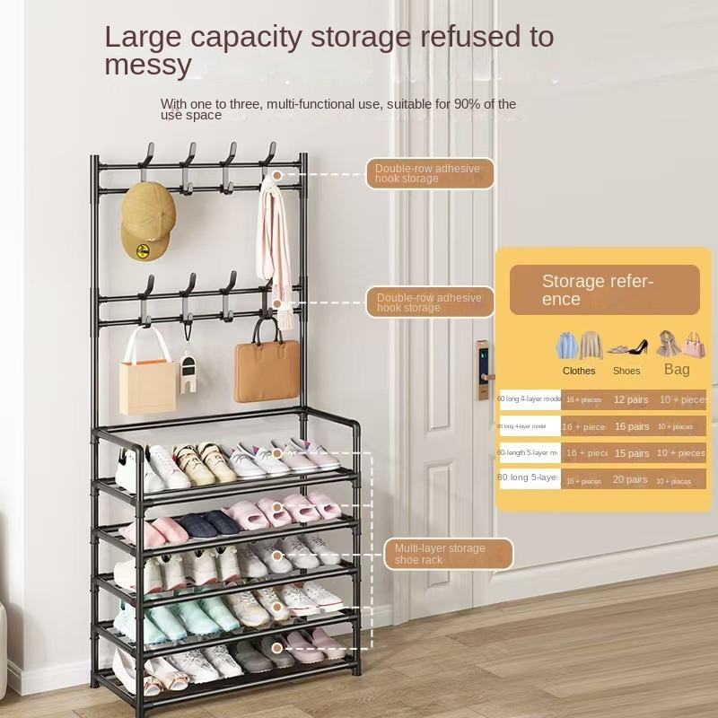 Appendiabiti Monoblocco Multistrato per la Casa con Scarpiera in Metallo dal Design Semplice, Soluzione Multifunzionale da Ingresso per Riporre i Vestiti