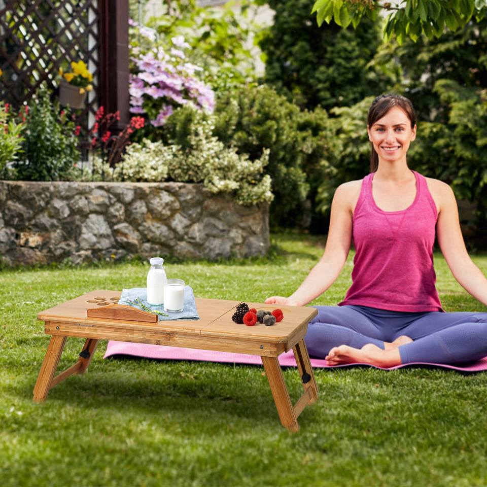 Multi-posizione regolabile in bambù scrivania pieghevole gamba lato cassetto di stoccaggio per studio di lavoro colazione vassoio da letto da esterno