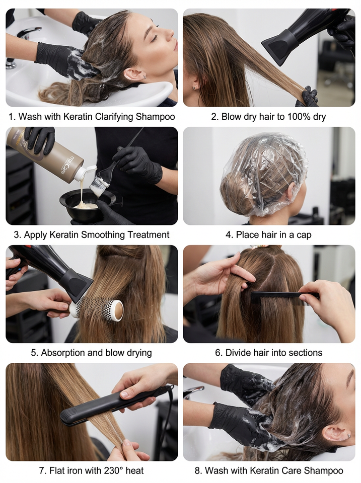 Trattamento Riparatore Multi-Ristrutturante per Capelli con Cheratina 0% Formaldeide ed Essenza di Collagene, Senza Fumo, Lisciante Bio Salutare