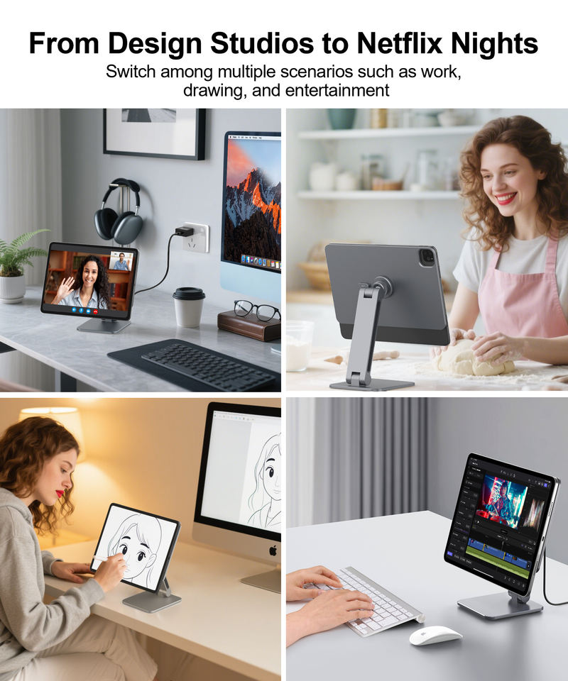 Multi-angolo portatile in lega di alluminio Wireless ricarica iPad supporto magnetico 360 rotante Design pieghevole per iPad Pro 13 pollici