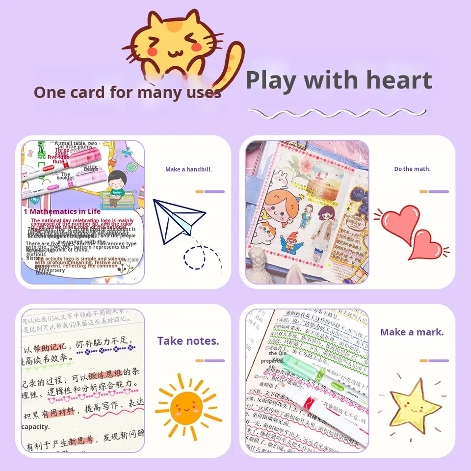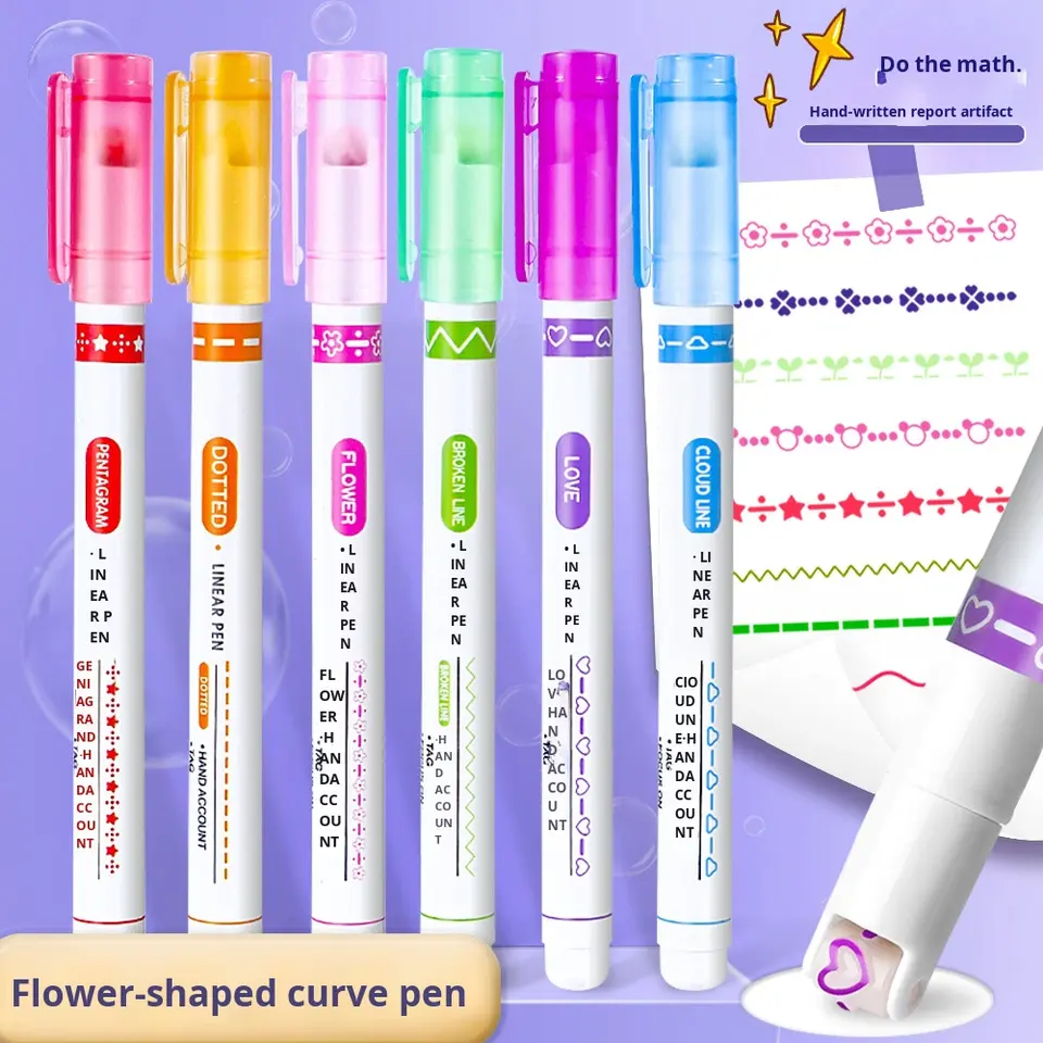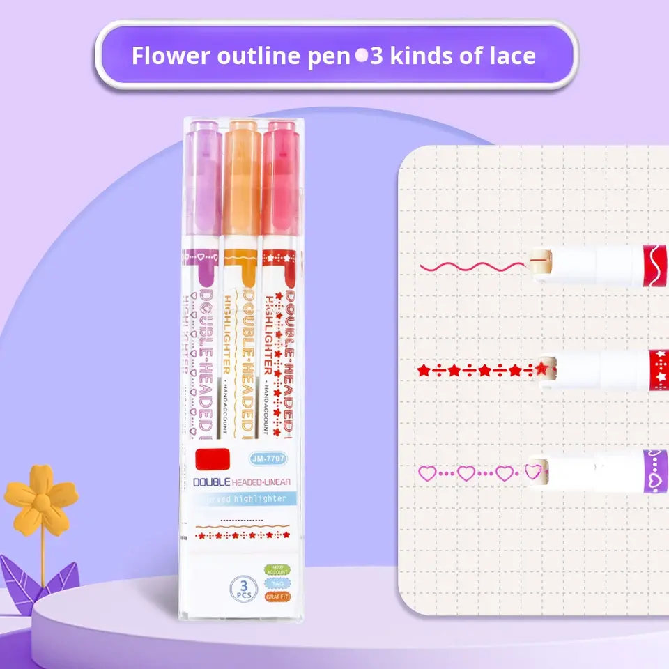 Evidenziatore a Doppia Punta Multifunzione a Forma di Fiore in Plastica per Quaderni Studenti, Marcatori a Curva Ondulata