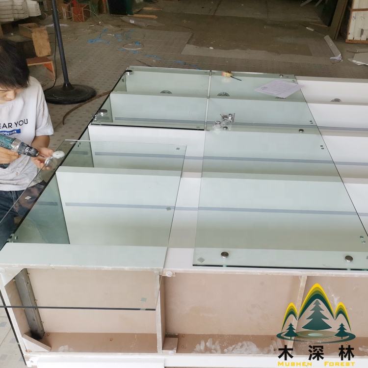 Mensola in vetro multistrato con illuminazione a LED mobili per negozi di buona qualitàTipo