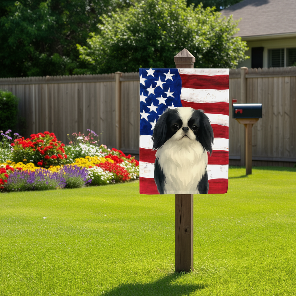 Bandiera da Giardino Giapponese con Bandiera Americana, Decorazione Bianca e Nera per Cortile, Banner Artistico per Patio, Insegna Floreale per Prato