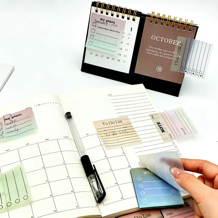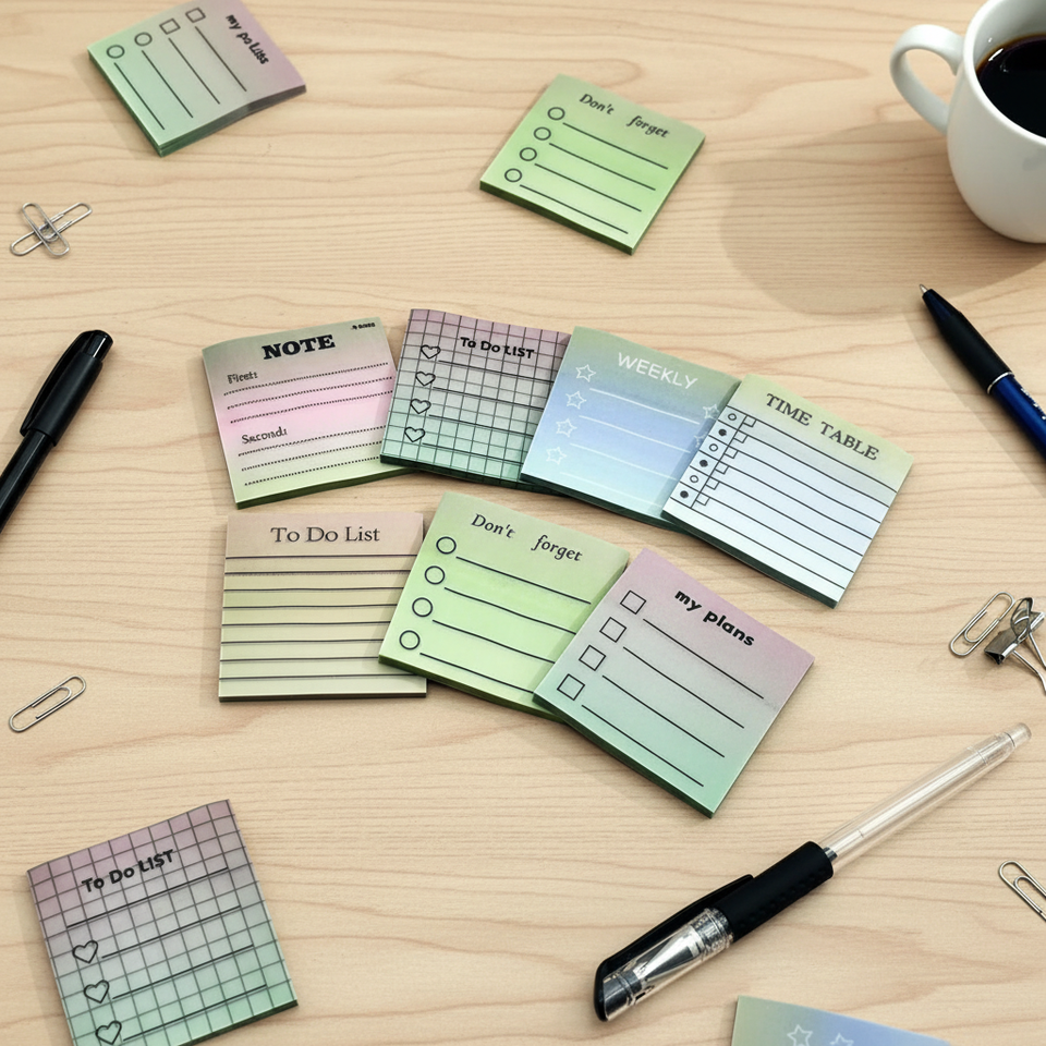 Blocco Note Adesivo Multicolore Quadrato per Lista delle Attività, Pianificazione Settimanale, Tabella Oraria, Carta Traslucida Biodegradabile