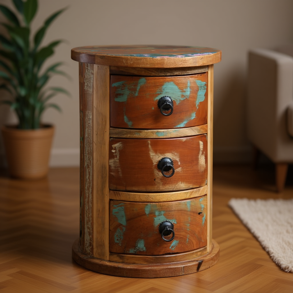 Mobiletto Contenitore in Legno Massello Recuperato con 3 Cassetti, Design Rustico, Arredamento Soggiorno, Stile Antico Marrone