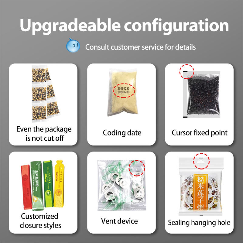 Macchina per Confezionamento Automatico Multifunzione 10-500g per Arachidi, Noci, Biscotti, Popcorn, Patatine, Varie Dimensioni