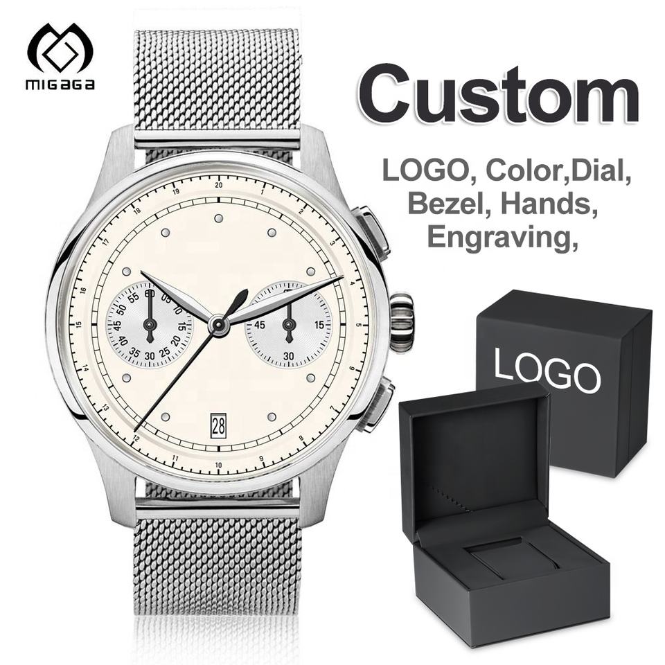 Multifunction 316l Stainless Steel Watch case Strap Customize logo Retro Classic Chronograph Automatic Men Watches High Quality
