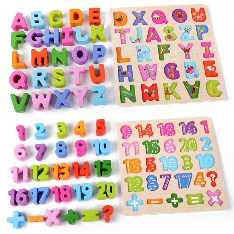 Multifunzione educativi colorato lettera numero di threading giocattolo di legno alfabeto puzzle per i più piccoli