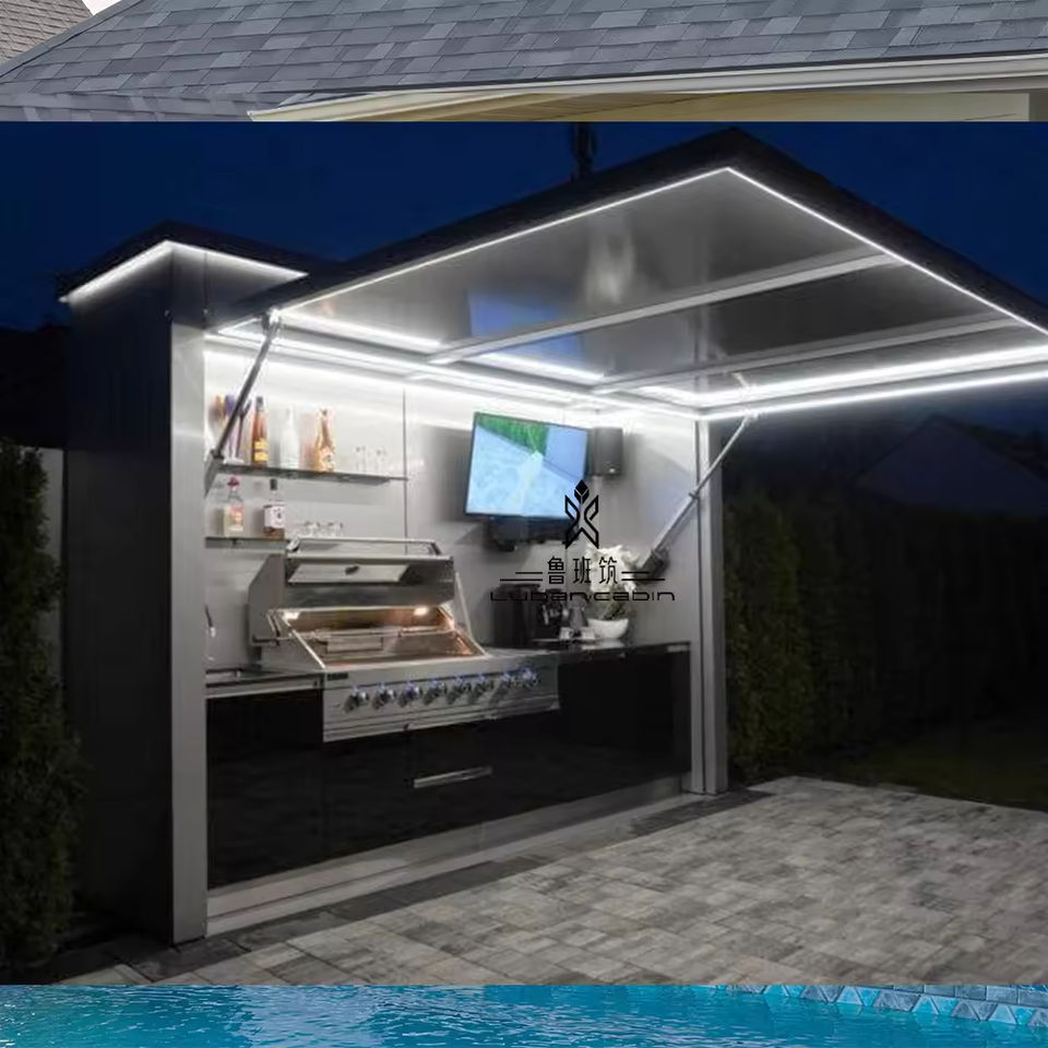 Food Truck Multifunzione in Acciaio Inox Completamente Attrezzato con Cucina Completa per Snack Mobile