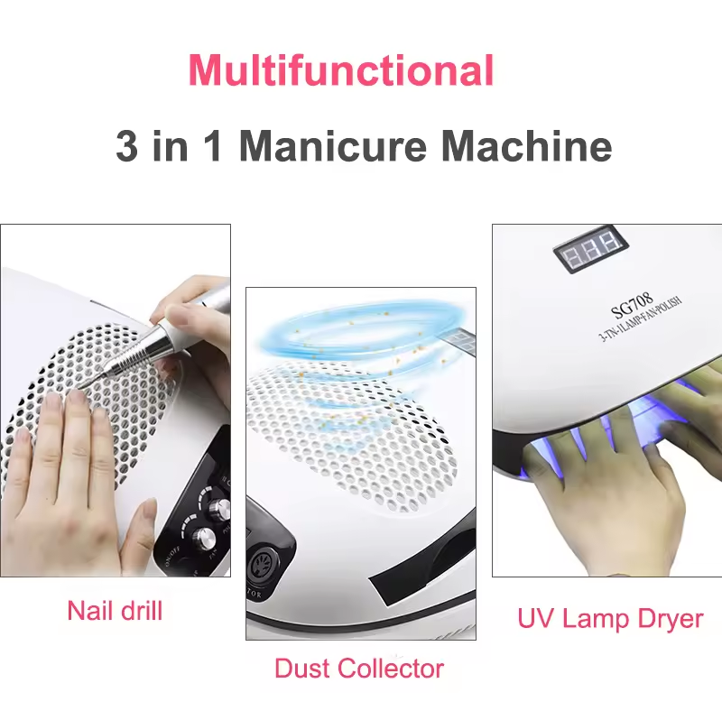 Lampada UV LED Multifunzione 140W Asciugatrice per Salone 3-in-1 con Aspiratore per Polvere e Trapano Elettrico per Unghie