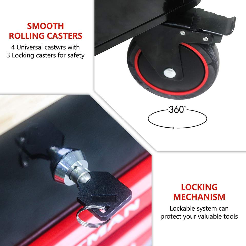 Carrello multifunzione a 3 cassetti con ruote e piano in legno per l'organizzazione dello stoccaggio