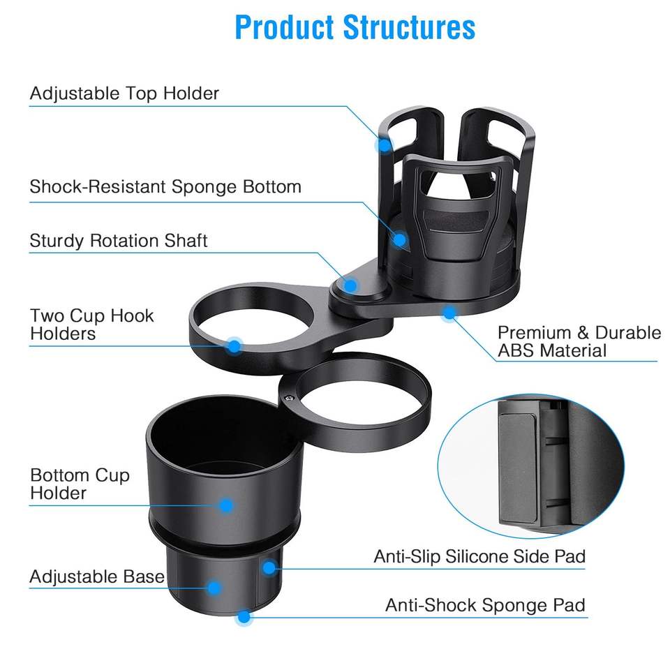 Portabicchieri Multifunzionale 4-in-1 per Auto con Rotazione a 360 Gradi, Supporto per Bicchieri e Organizzatore per Bottiglie