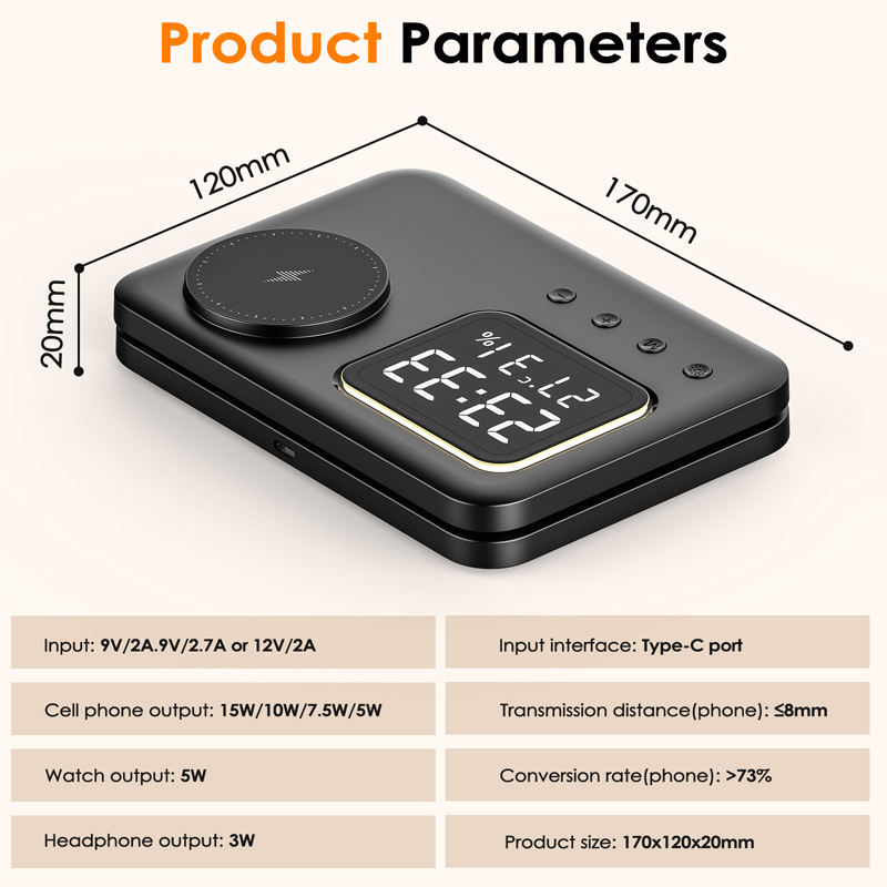 Nome del prodotto:Sveglia 5 In 1 caricatore Wireless