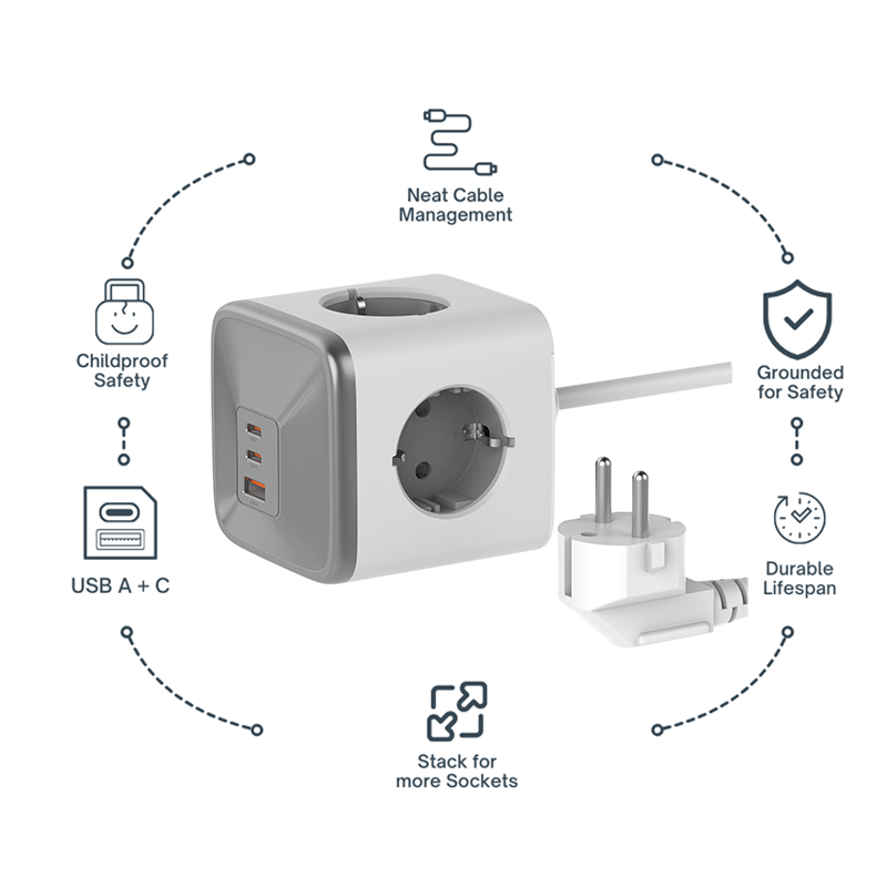 Spina di alimentazione elettrica multifunzione presa cubo di estensione con protezione contro le sovratensioni Power Cube