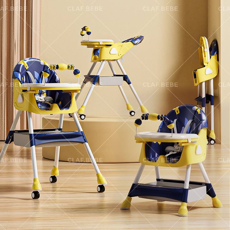 Multifunctional Foldable Kids High Feeding Chair Adjustable Height Baby Deck Chair with Toys