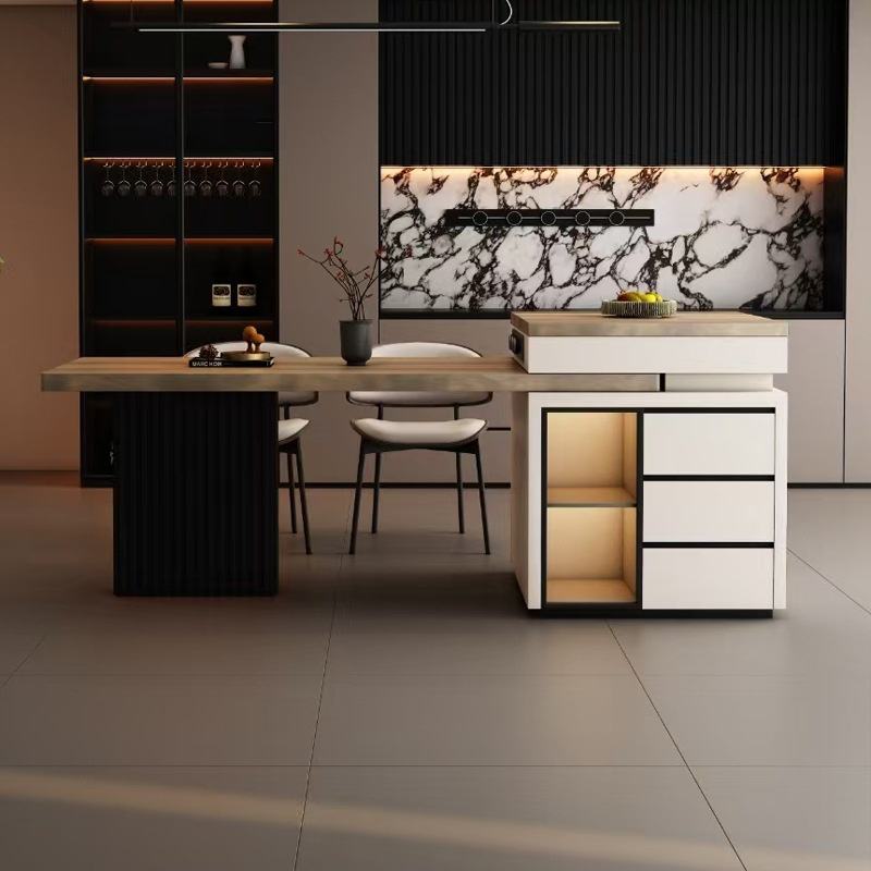 Multifunctional High-end Wooden Rock Slab Island Italian Light Luxury Design Rectangular Kitchen Peninsula