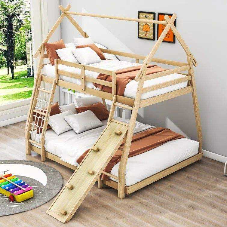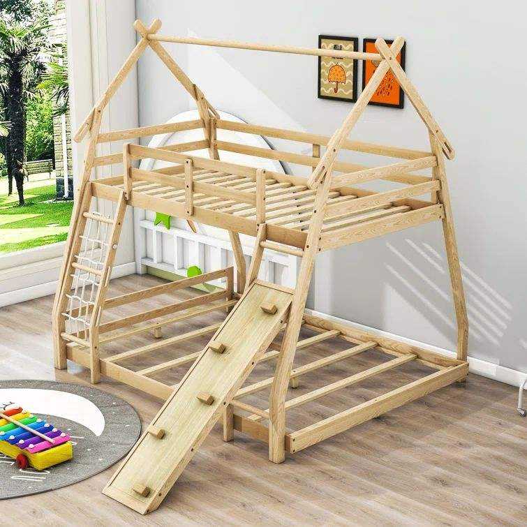Culla Multifunzionale di Alta Qualità per Bambini, Letto per Neonati in Legno, Triangolo di Arrampicata con Scivolo