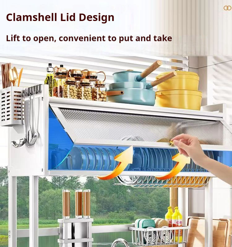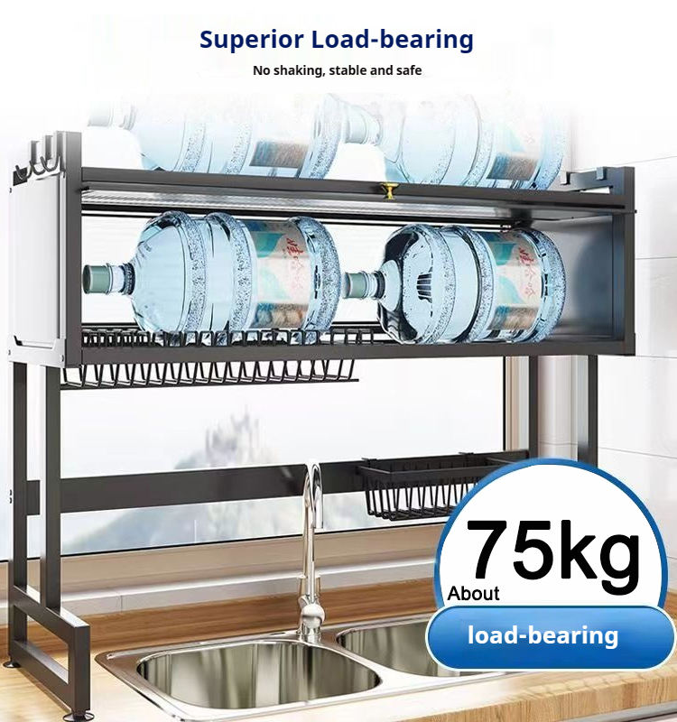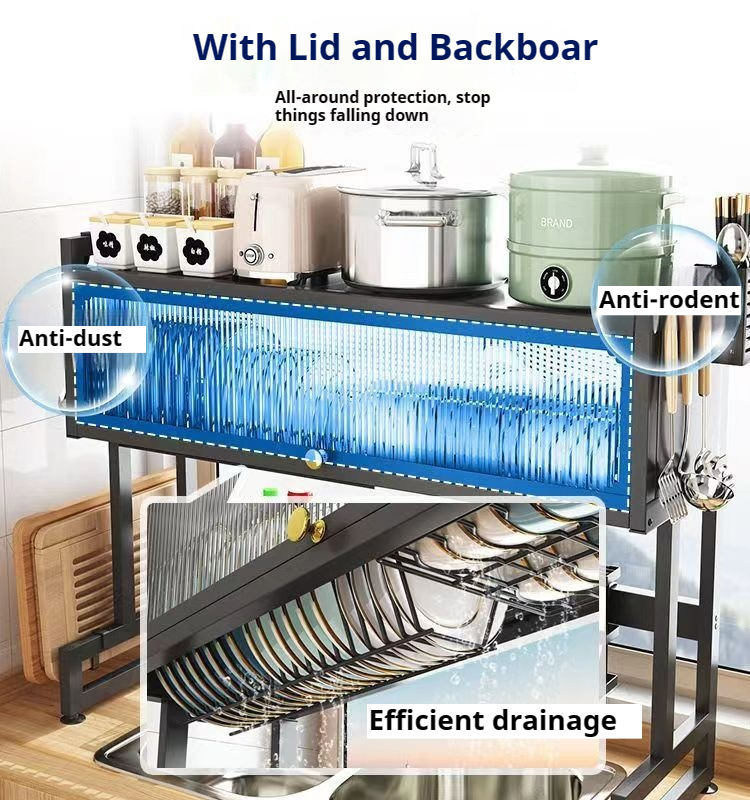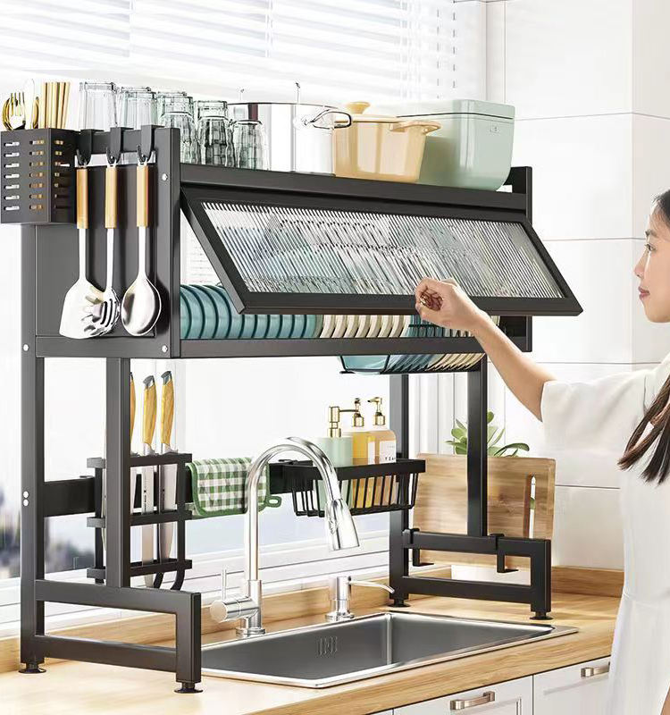 Scaffale Multifunzionale per Cucina - Organizzatore per Lavello in Acciaio al Carbonio a Doppio Livello per Verdure, Ciotole, Piatti, Spezie, Asciugatura e Drenaggio