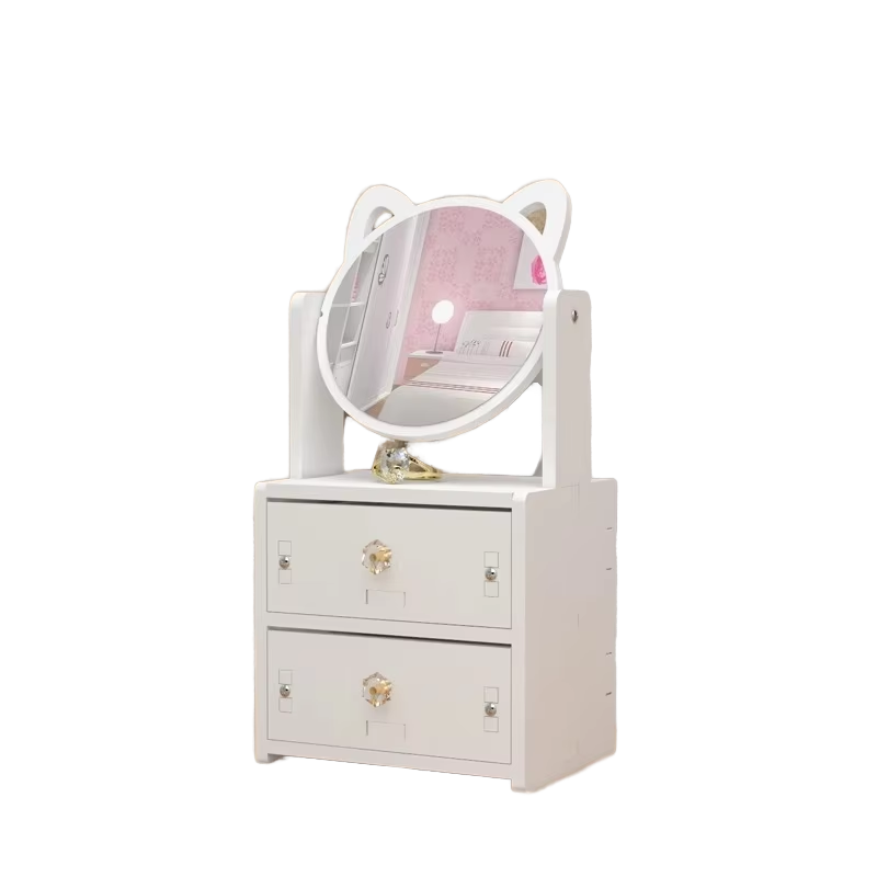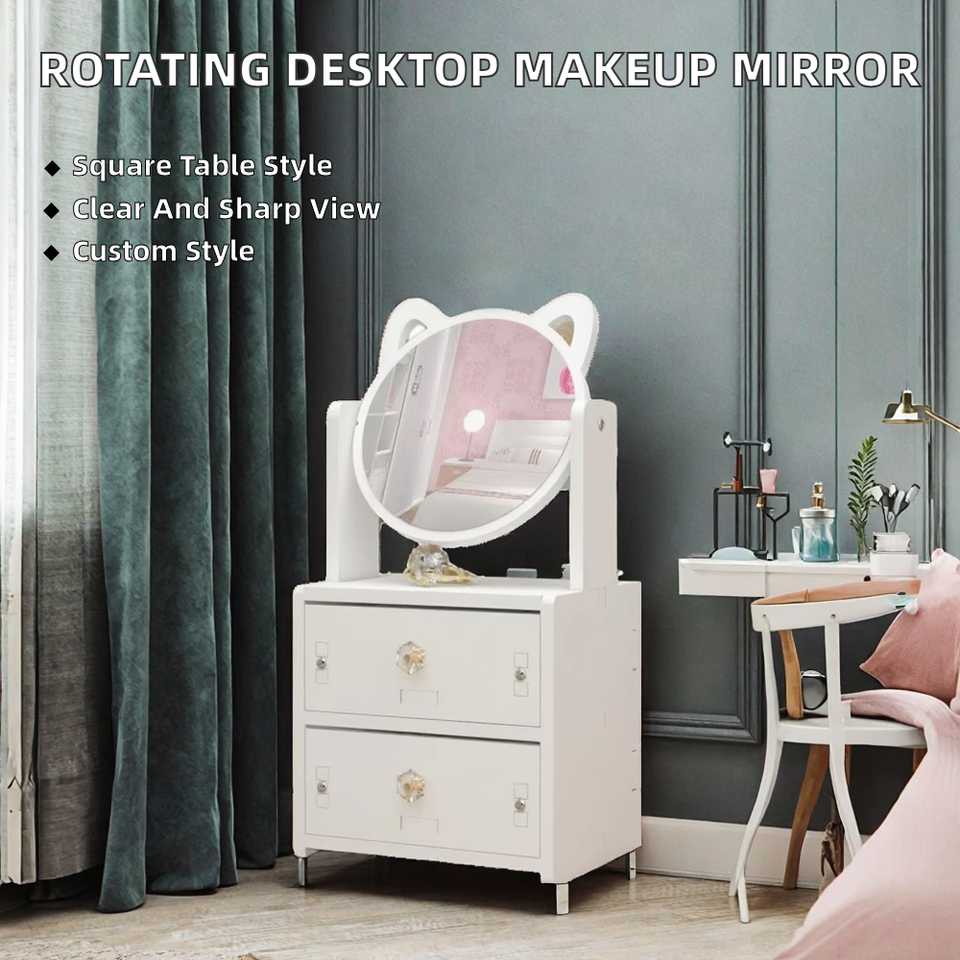 Specchio Rotondo Bianco Multifunzionale di Lusso, Scatola Portacosmetici Nordica con Specchio e Manici