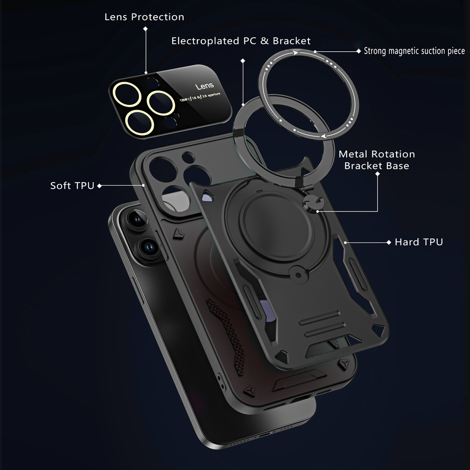 Custodia Multifunzionale con Supporto Magnetico per iPhone 15 Pro Max, Design con Ampia Finestra per Protezione Obiettivo