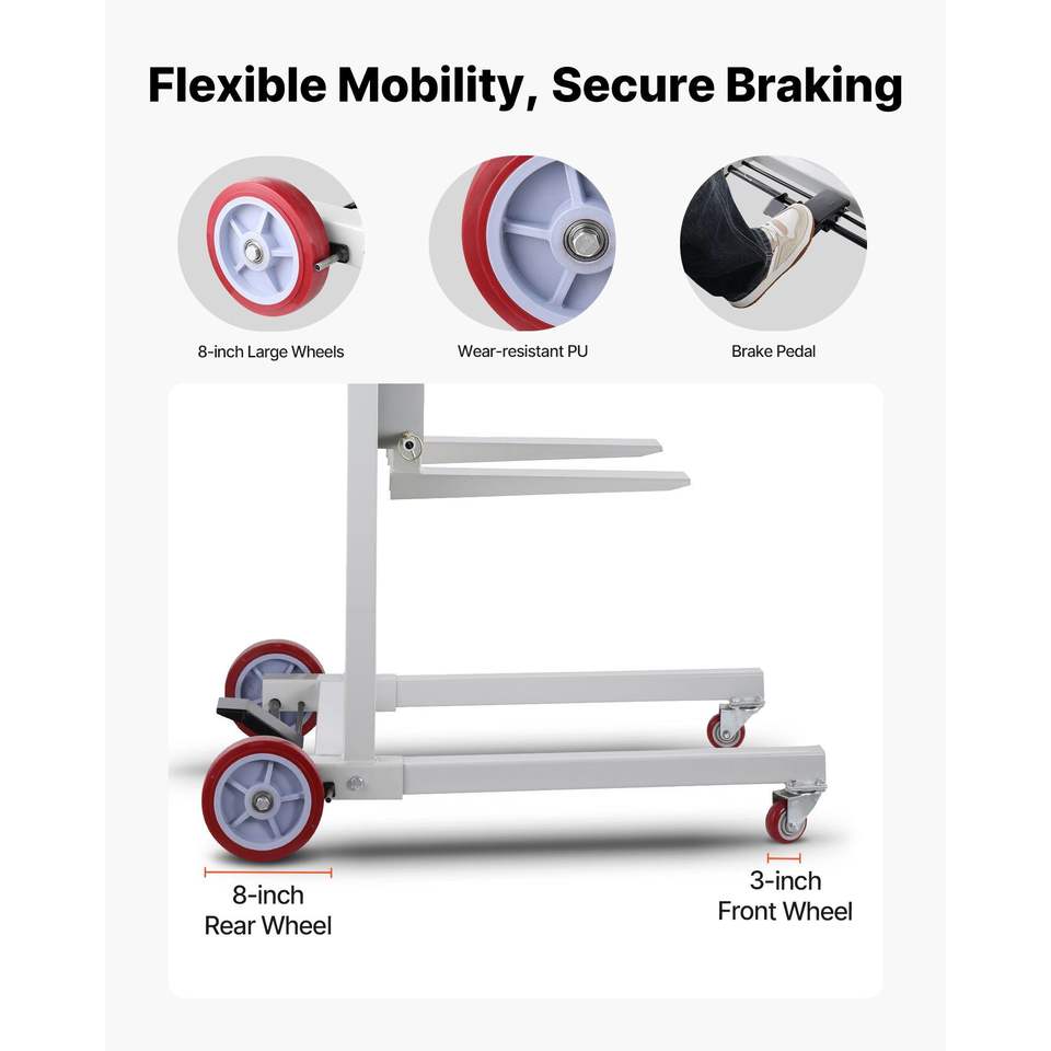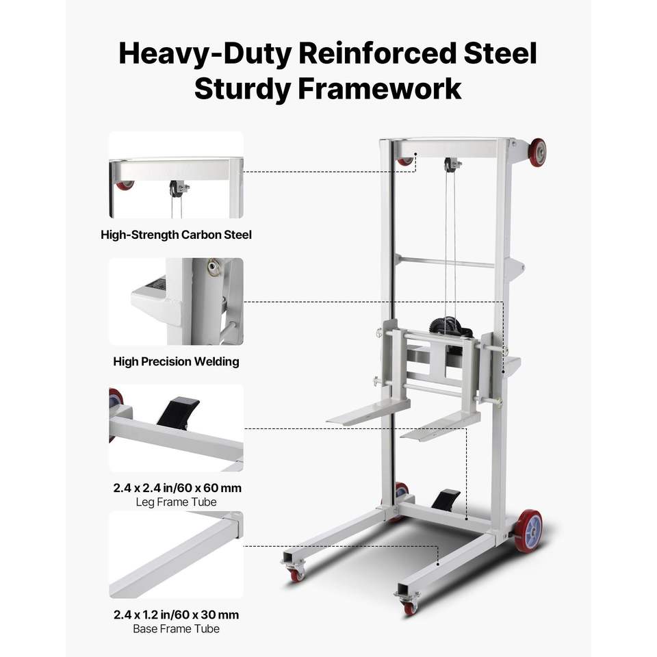 Carrello Elevatore Manuale Multifunzione con Verricello, Capacità 250 kg, Altezza Massima di Sollevamento 70 cm, Sollevatore Materiali