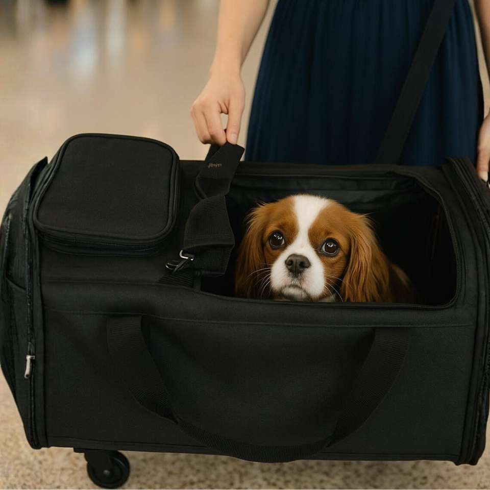 Multifunctional Outdoor Pet Carrier With Trolley Foldable Supportive Black 51 X 31 X 36