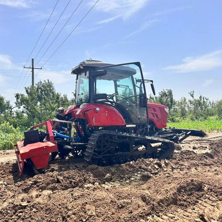 Motocoltivatore Cingolato Multifunzione per Semina, Trebbiatura, Taglio del Prato, Aratura, Diserbo e Fresatura