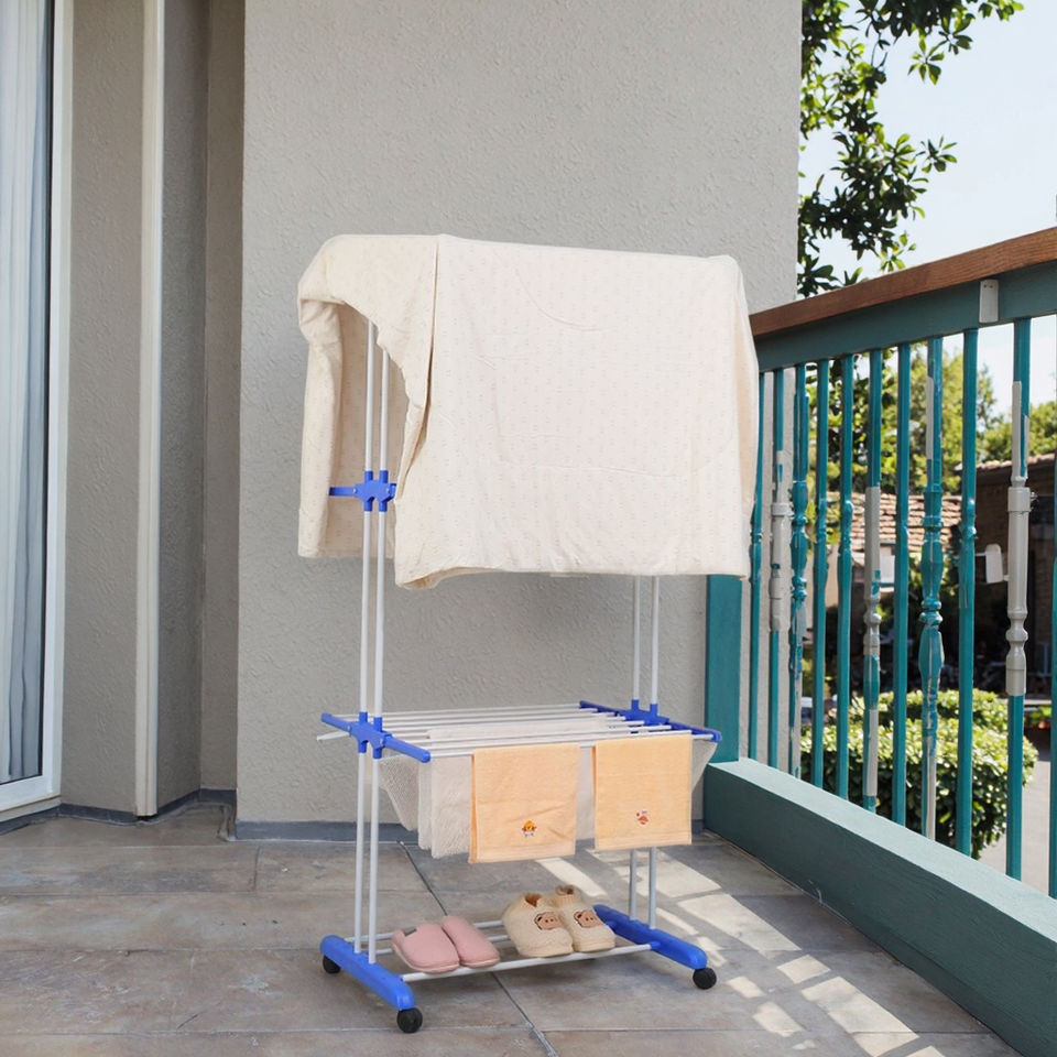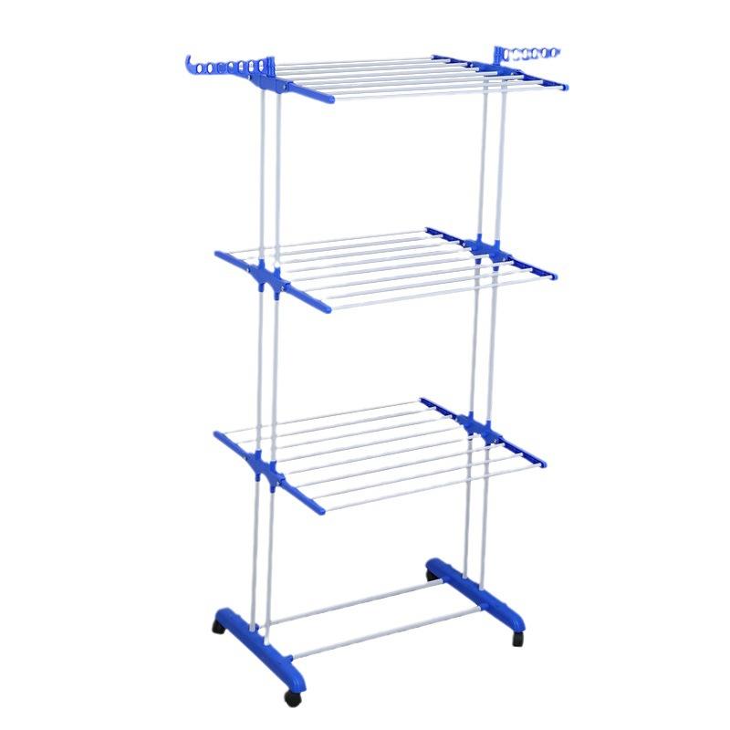 Multifunctional Three-Layer Foldable Flying Wing Towel Clothes Drying Rack 19 Tubes Indoor Floor-Standing Mobile Rack Wholesale