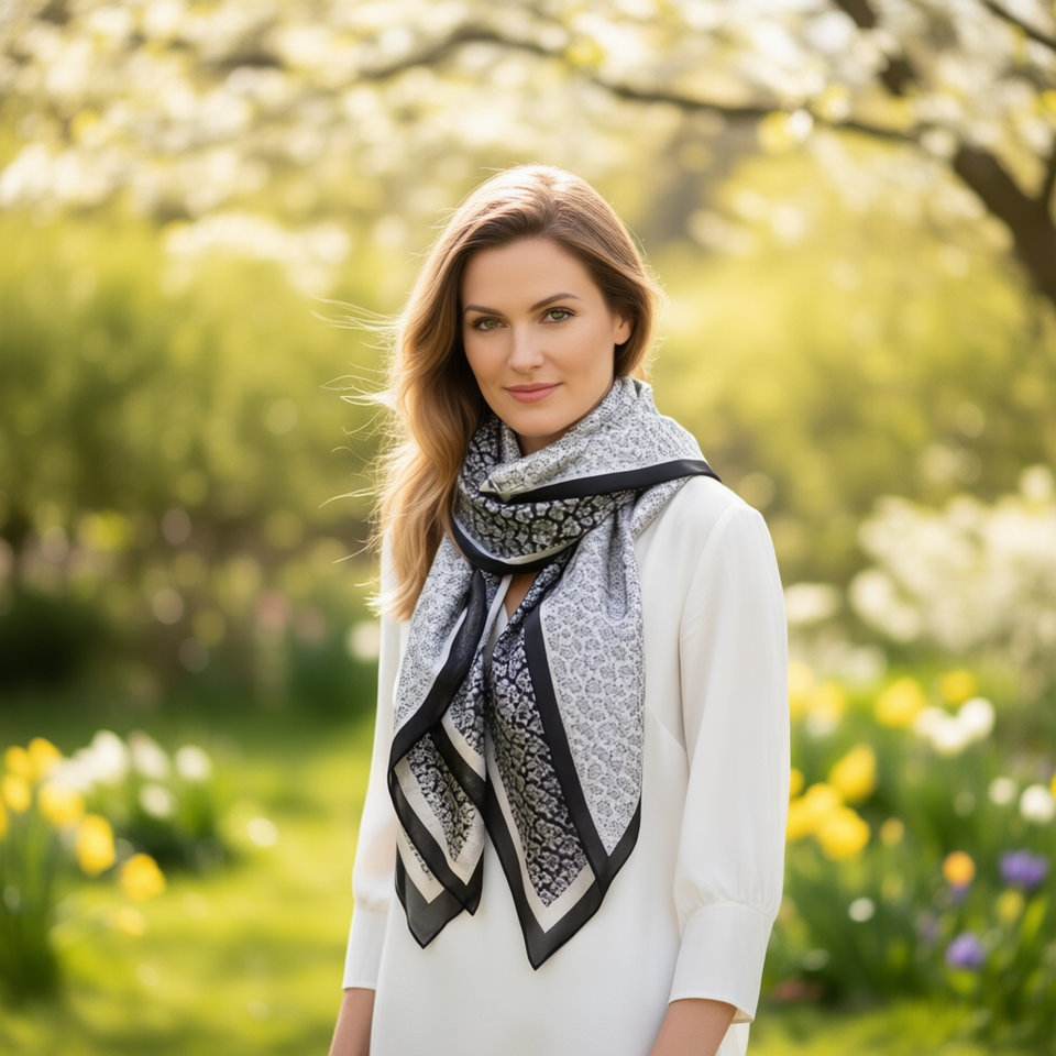 Sciarpa triangolare multifunzionale 135*60 cm con stampa floreale reversibile per donna, accessorio moda