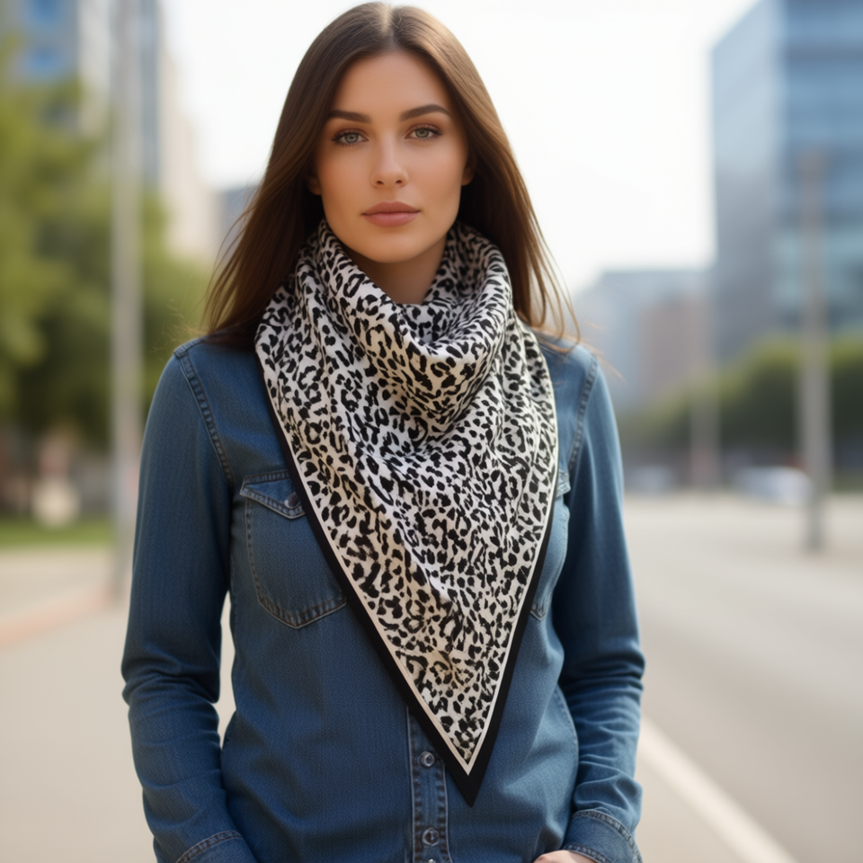 Sciarpa triangolare multifunzionale 135*60 cm con stampa leopardata, accessorio moda per il collo
