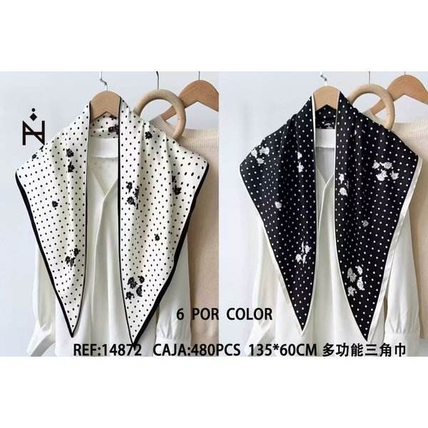 Sciarpa triangolare multifunzionale 135x60 cm con design a pois per donna