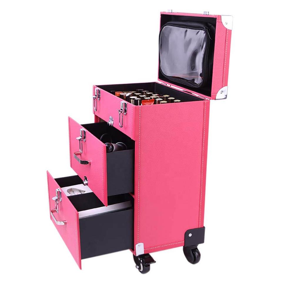 Trolley Multistrato per Artisti Valigia per Trucco Professionale in Pelle con Ruote e Specchio