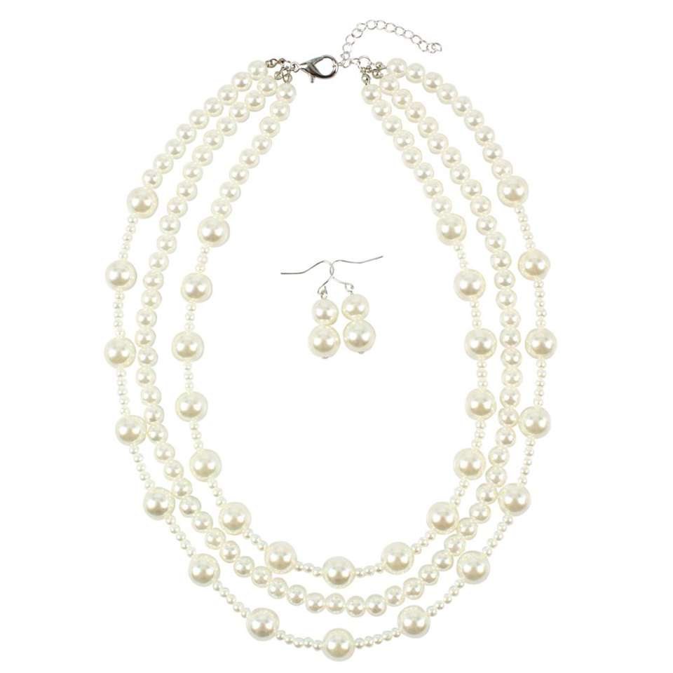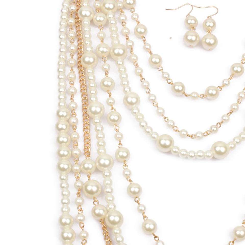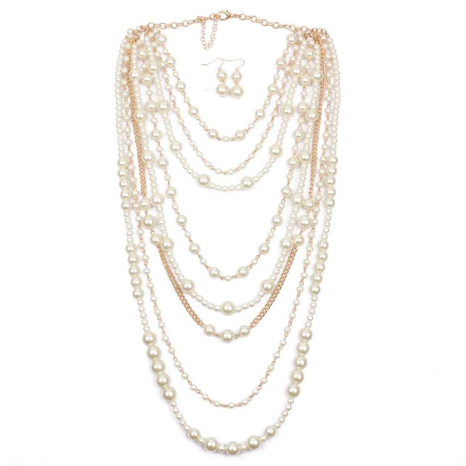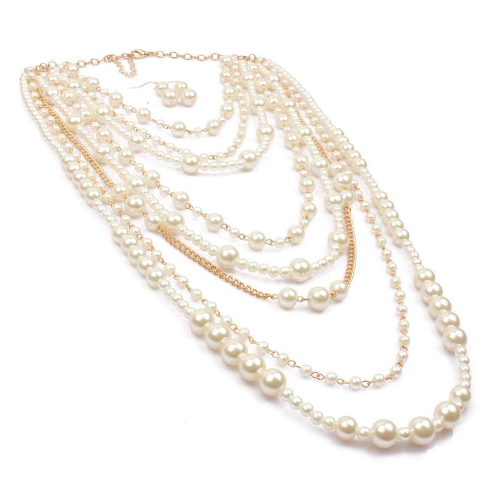 Collana girocollo lunga a grappolo con perle finte a catena a filo multistrato