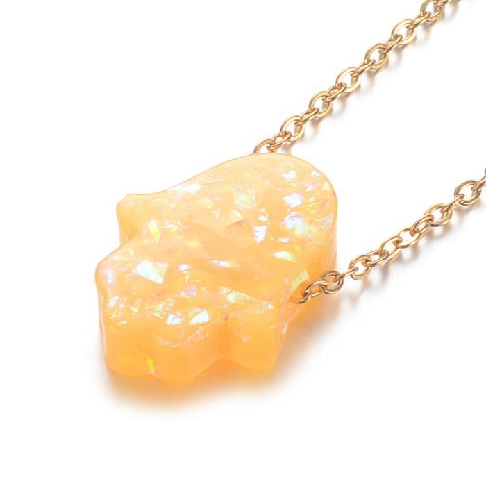 Più di colore della mano di hamsa della resina di figura di modo di stile della catena del commercio all'ingrosso choker 18k oro placcato in acciaio inox collana di hamsa mano