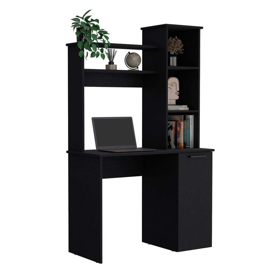 Scrivania per Computer Muncy con ampio piano di lavoro a porta singola con ripiani a tre livelli